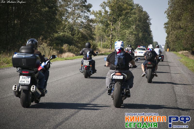 Утром Ивангород залил рев моторов - приехала колонна байкеров во главе с главой Ленинградской области Александром Дрозденко.