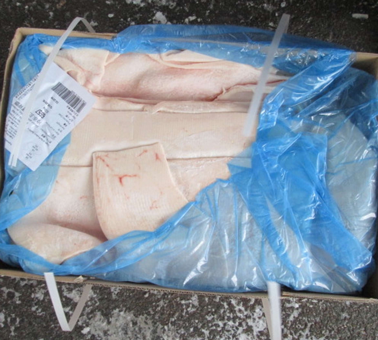 При вскрытии одного контейнера обнаружен замороженный свиной шпик, выработанный на испанском предприятии. Во втором контейнере также обнаружен замороженный свиной шпик, на этот раз из Германии. В настоящий момент данные предприятия не имеют права поставки продукции в Россию.