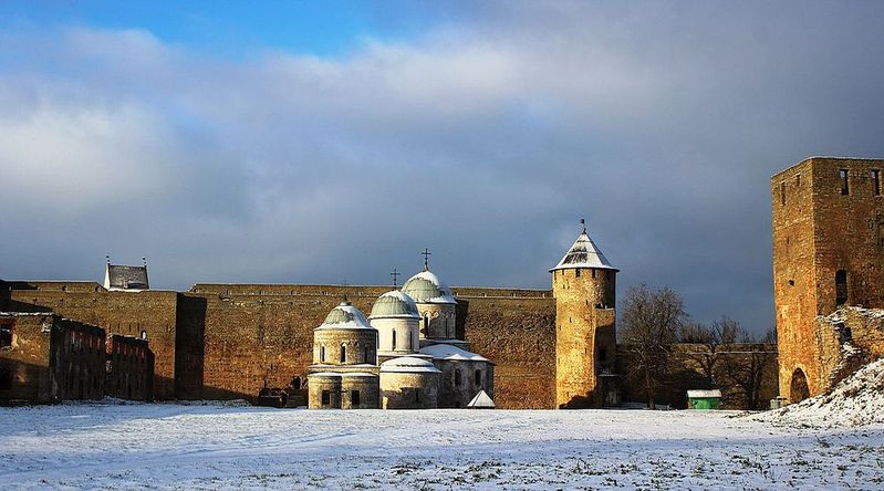 В Великую Отечественную крепость ощутимо пострадала. До сих пор ее полностью не восстановили, поэтому нарядной ее назвать нельзя. Однако суровый дух России еще до правления Ивана Грозного остался. Осталась и «противостоящая» Нарвская крепость. Обладатели шенгена могут не только полюбоваться ею с противоположного берега, но и прогуляться в Эстонию.