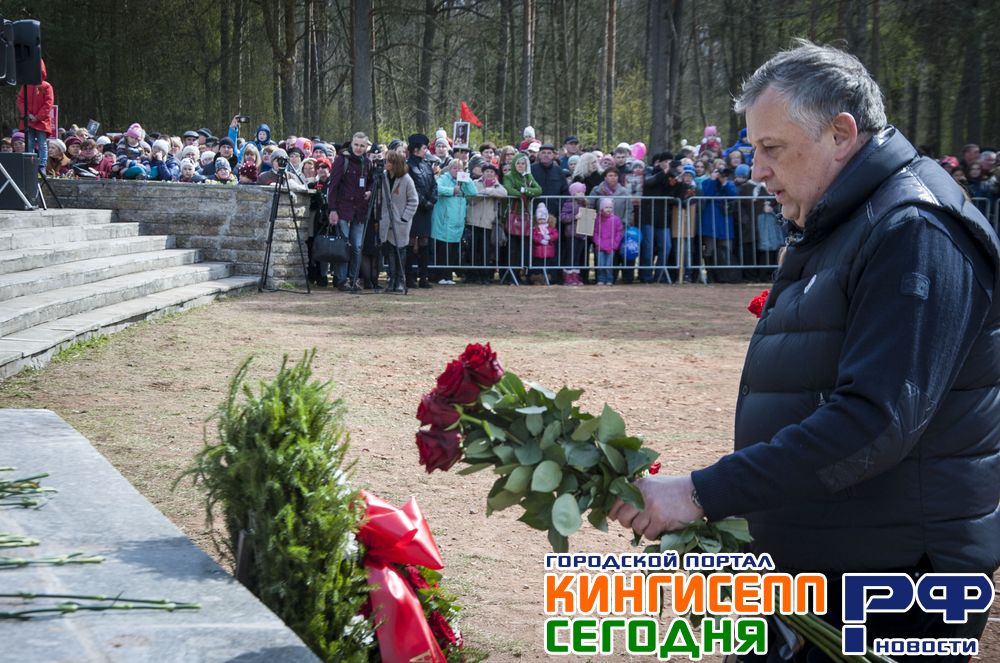 В этом году и губернатор Ленинградской области А.Ю.Дрозденко приехал в Кингисепп, чтобы разделить с нами этот день, чтобы поздравить наших ветеранов и возложить венки к Вечному Огню.