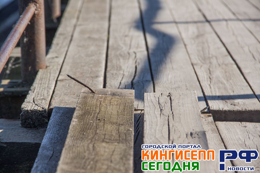 На аварийное состояние моста, соединяющего основную часть города с районом Заречье, парламентарию пожаловались местные жители. «Победовский» мост был построен еще в 1945 году. Последний раз его ремонтировали в 2008 году. Деревянный настил переправы прогнил, опоры разрушаются, не работает освещение. С одной стороны к мосту ведет крутой спуск, с другой – лестница с высоким уклоном. «Все это создает большие проблемы при пересечении моста, особенно для пенсионеров и матерей, гуляющих с детьми в колясках. Людям с ограниченными возможностями и вовсе не преодолеть мост самостоятельно. В непригодности переправы Руслан Гайсин убедился лично, в ходе рабочей поездки в Кингисепп 25 мая», - сообщает пресс-служба депутата.
