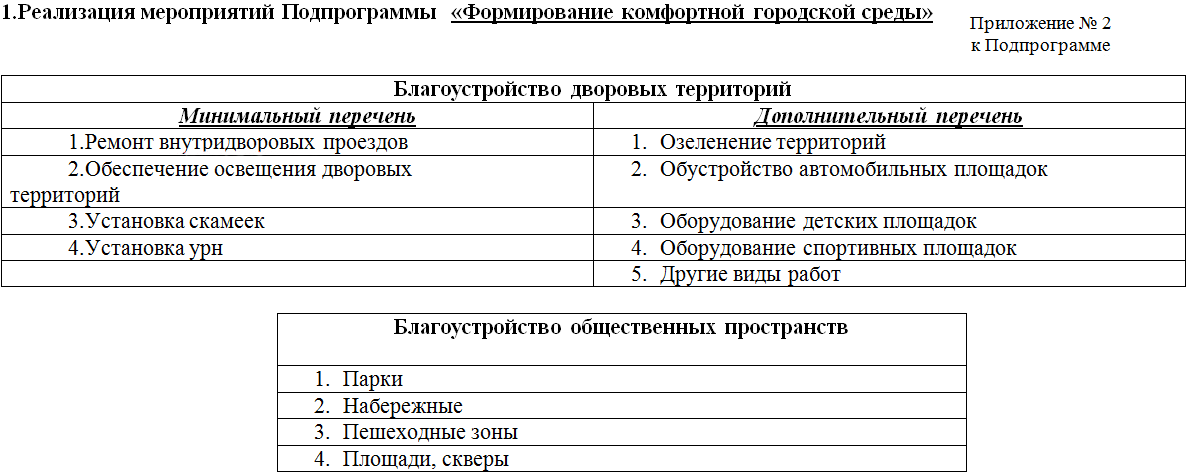 - минимальный перечень благоустройства (асфальтирование двора, освещение и установка скамеек и урн);