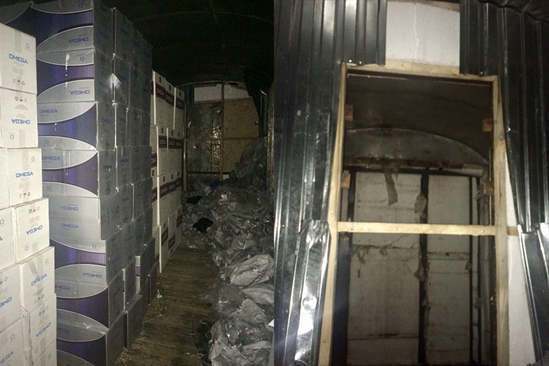 Как сообщает пресс-служба ПУ ФСБ РФ по Петербургу и Ленобласти, контрабанду обнаружили 19 июля. Коробки с сигаретами были спрятаны в специально оборудованных технических полостях вагона-рефрижератора, следовавшего через Ивангород в Эстонию.