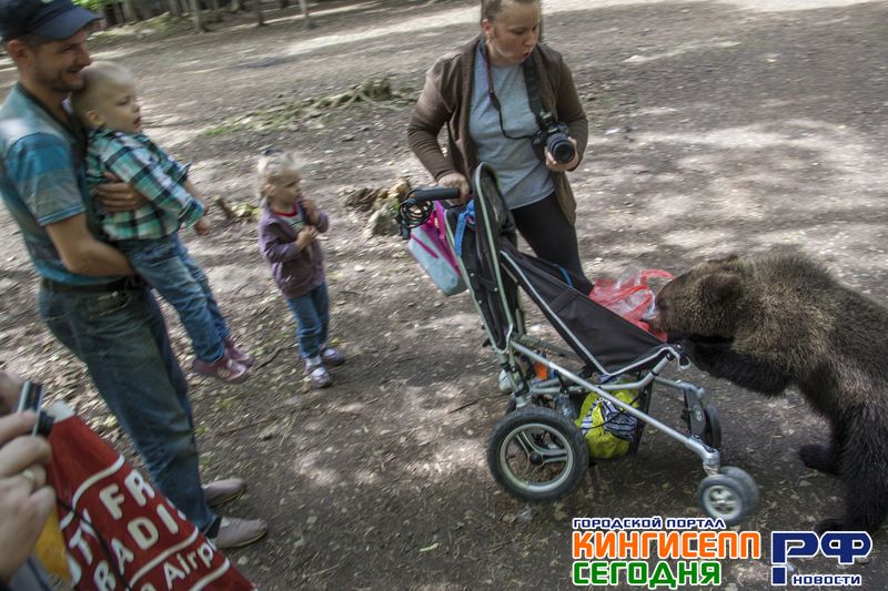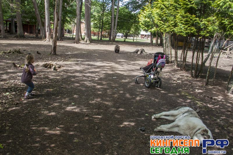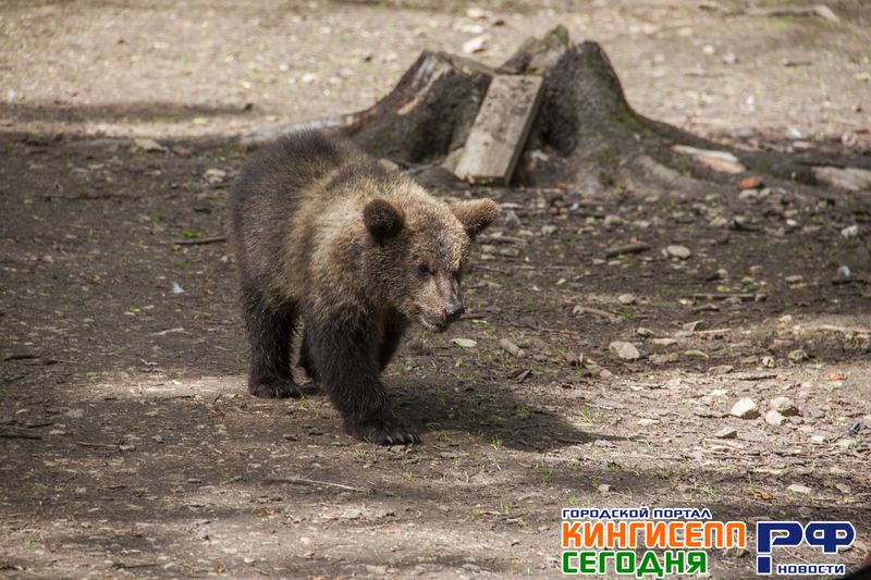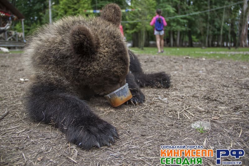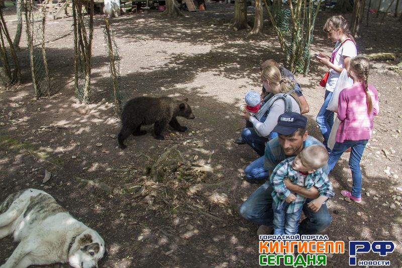 Пока Геннадий Сергеевич дает вновь зашедшим другие ценные советы по посещению, к нашей группе приближается настоящий медвежонок, которого зовут Винни Пух. В «Приют Белоснежки» его еще совсем маленького принесли кингисеппские лесники.