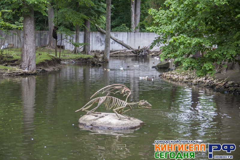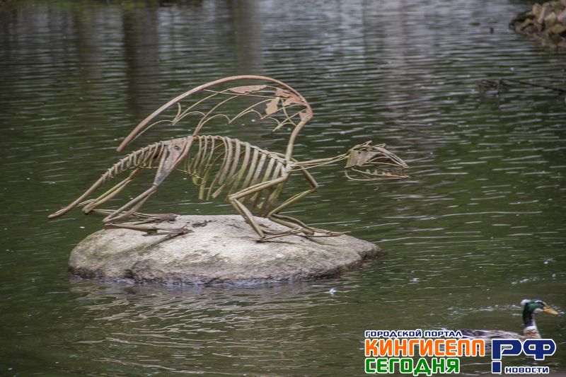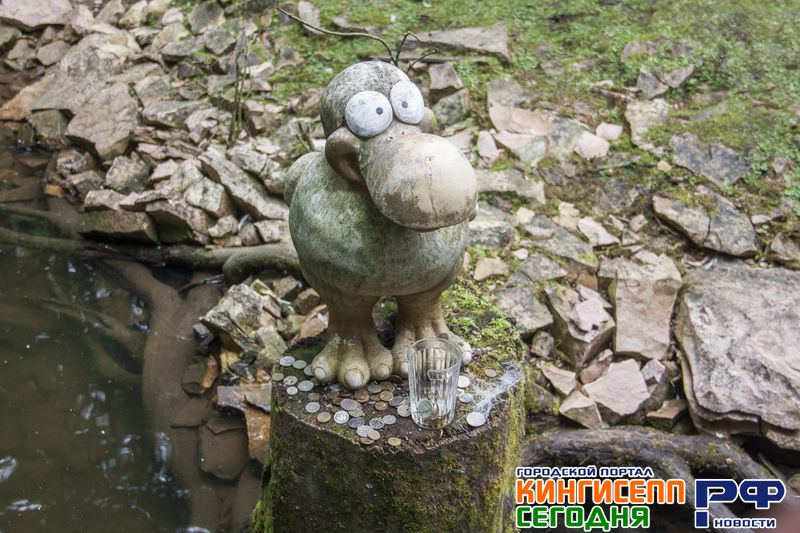 Уже на обратном пути через мостик, гид обращает наше внимание на сидящую на берегу водоема фигурку птицы.
