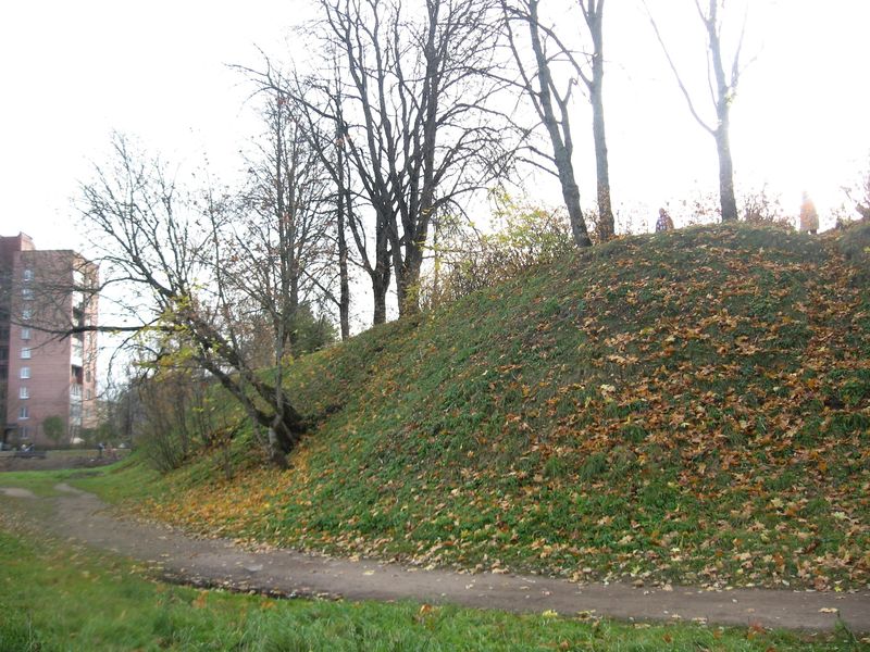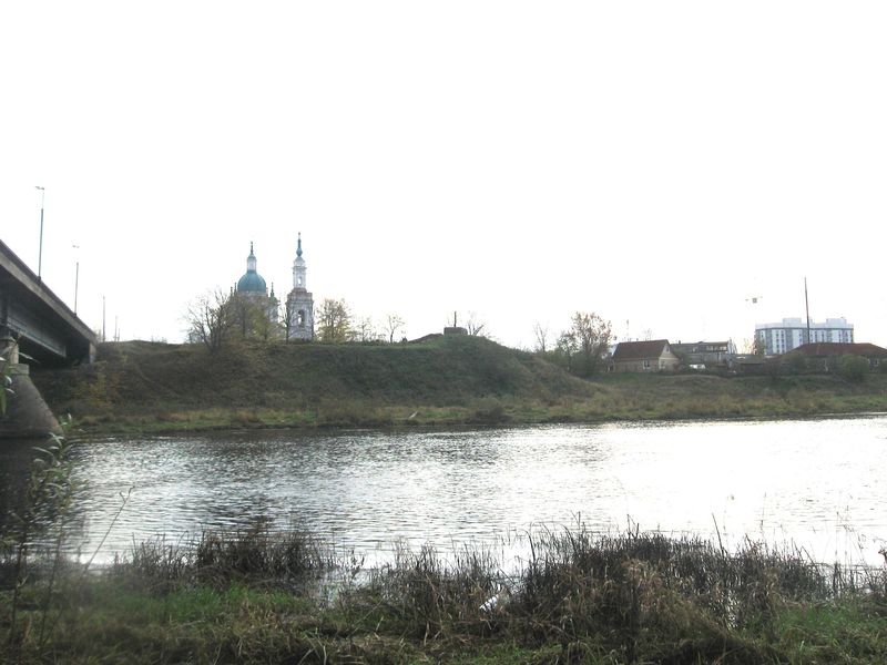 Земляная бастионная крепость Петра тоже была немаленькой, валы тянутся по обе стороны от моста. До этого были те, что слева от моста, если смотреть с другого берега, а вот продолжение справа, возле Екатерининского собора, который, кстати, был построен из камней, вынутых из стен и башни древнерусской крепости ( так что крепость воплотилась в соборе, она в нем, внутри).
