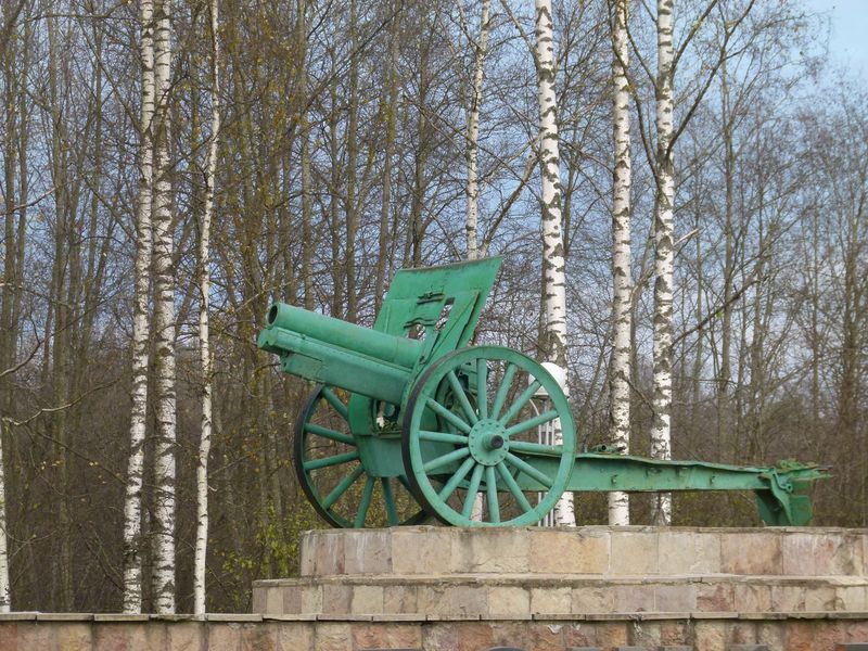 А еще на постаменте можно увидеть орудие той эпохи.