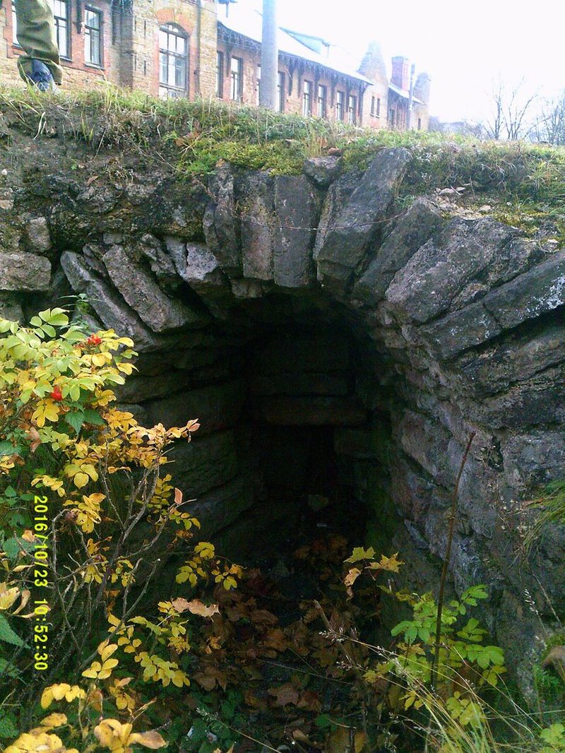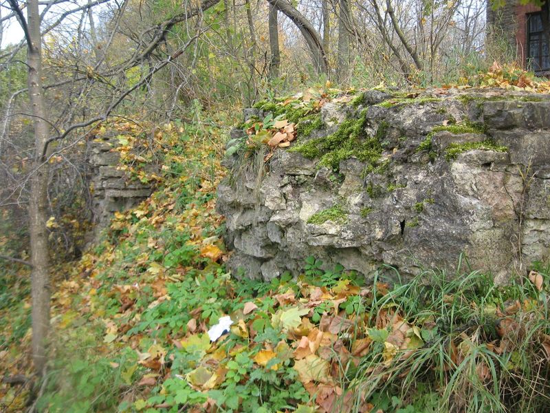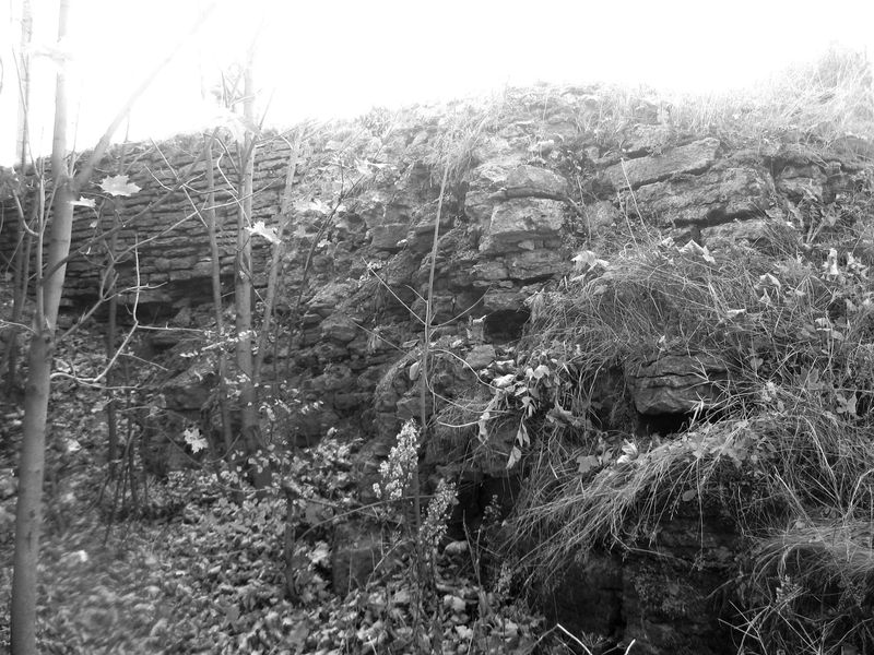 По другую сторону от моста - тоже вылезают сохранившиеся участки каменной кладки. На самом деле, их намного больше, но, как уже писал выше, они скрыты под земляными валами петровских времен.