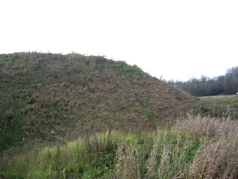 То, что видно слева от моста (к югу) - это остатки башни. Осенью или весной, когда мало зелени, хорошо видно круговую форму сохранившегося сооружения.