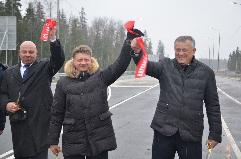 В торжественной церемонии запуска в эксплуатацию новой дороги приняли участие министр транспорта России Максим Соколов и губернатор Ленинградской области Александр Дрозденко.