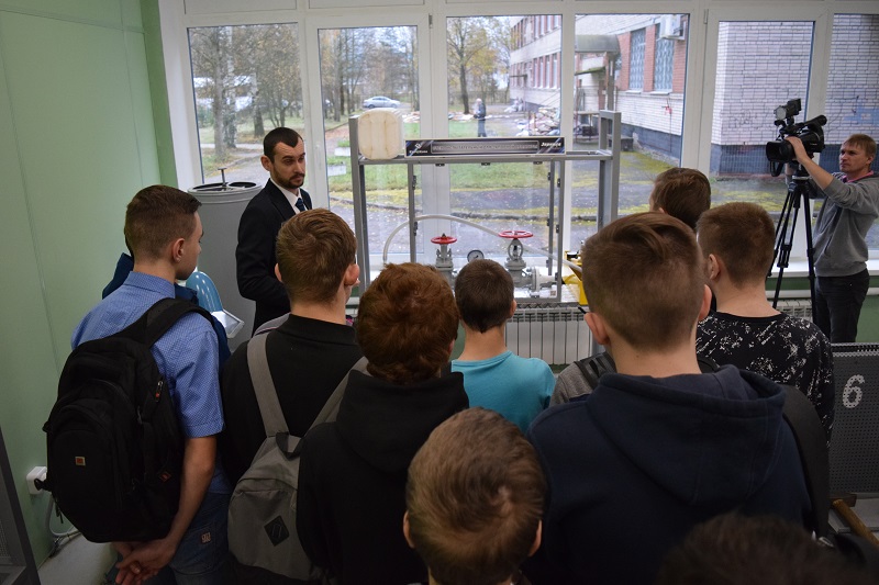 В целом, этот урок носил ознакомительный характер, поскольку слушателями являлись студенты первого курса. Это связано с тем, что из-за отсутствия материальной базы, колледж приостановил обучение по данной специальности более 10 лет назад. Возобновить слесарное дело удалось, благодаря восстановлению мастерской. Стоит отметить, что это облегчило и проведение открытого урока, поскольку все представленные там образцы запорной арматуры, вентилей и трубопроводов до мельчайших деталей имитируют оборудование, которое будет установлено в цехе.