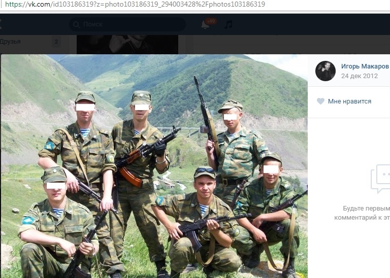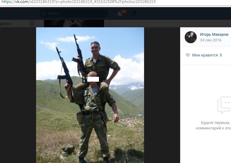 Про Макарова понятно, что он в разводе, есть маленький сын. Служил в 76-ой гвардейской десантно-штурмовой дивизии в Псковской области. Принимал участие в боевых действиях против Грузии на территории Южной Осетии в 2008 году. На армейских фотографиях проход российской техники через Рокский тоннель, указатель с расстоянием, оставшимся до Тбилиси, подбитые бронемашины, казарменный быт и естественное позирование с автоматами.