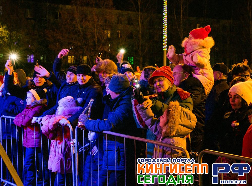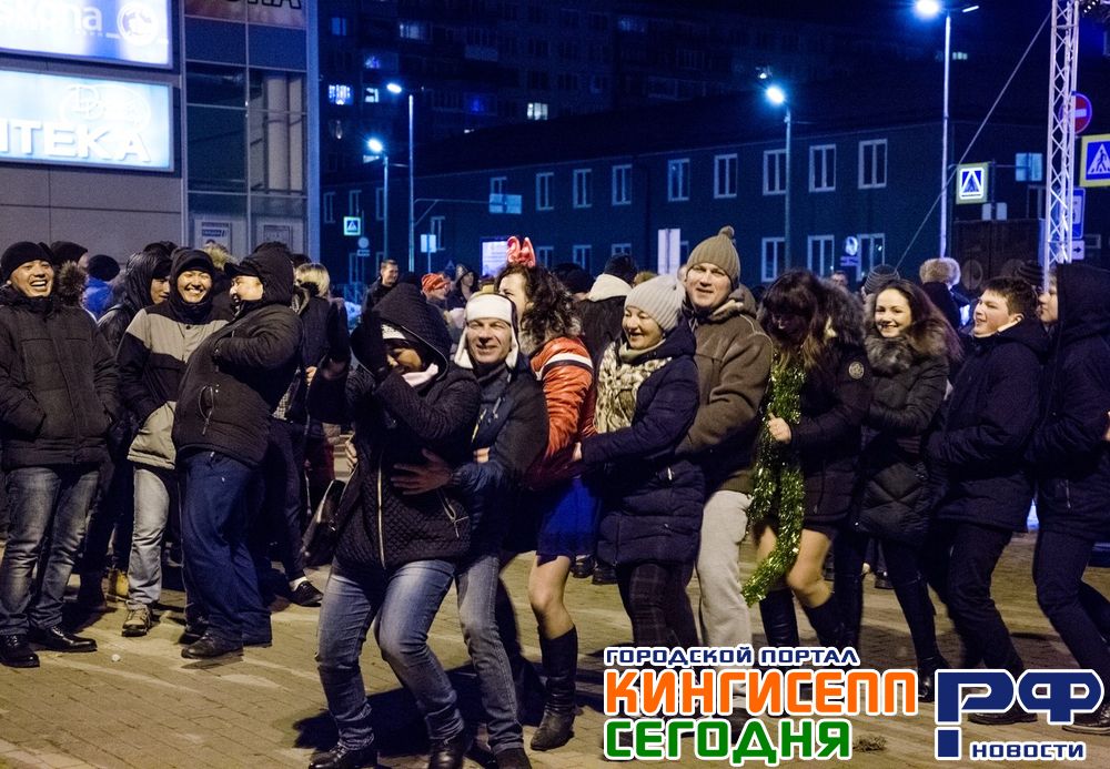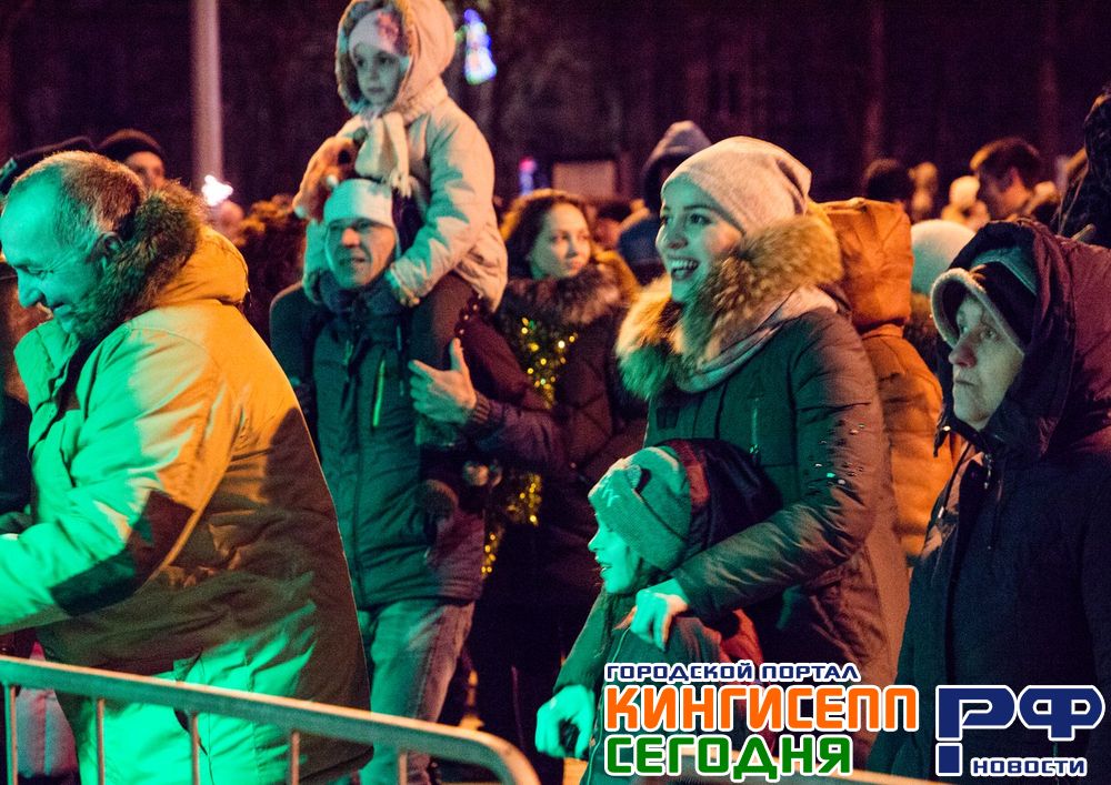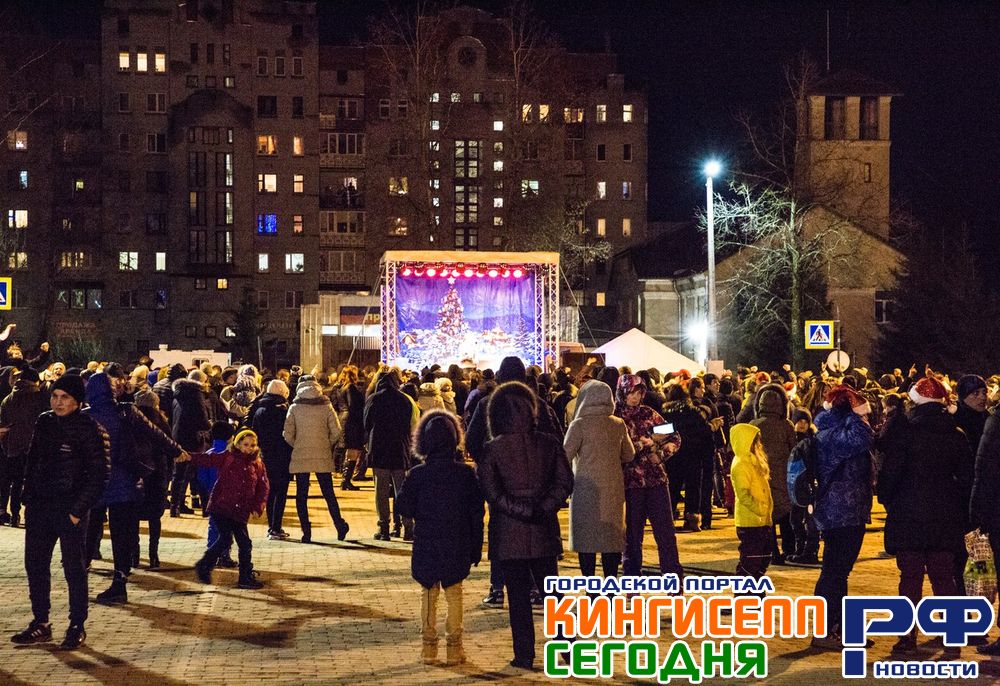 После новогоднего застолья многие кингисеппцы отправились на площадь к торговому центру «НОРД», чтобы вместе с Дедом Морозом и Снегурочкой встретить наступление нового 2018 года.