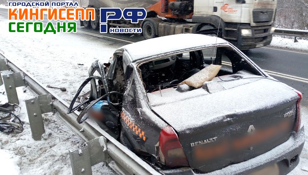 На границе Волосовского и Кингисеппского района столкнулись груженый щебнем «Mercedes» с полуприцепом и «Renault Logan» принадлежащий службе такси «Седан».