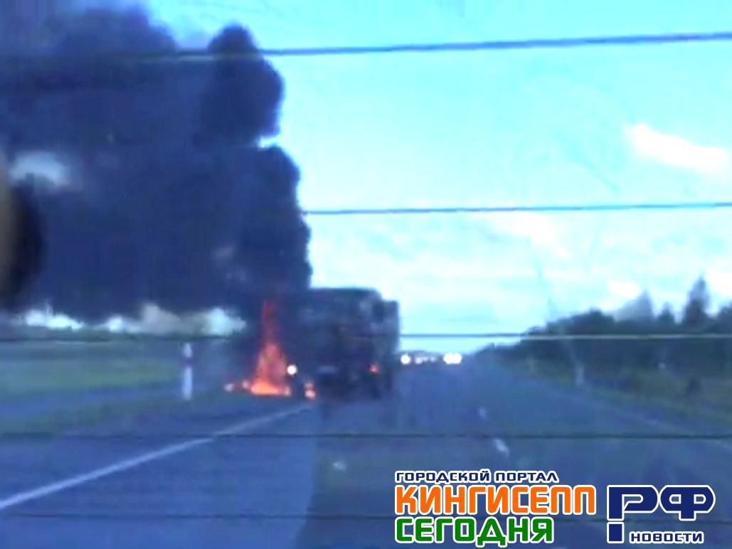 Вчера в половине восьмого между поворотом на д.Керстово и поворотом на д.Котлы произошло возгорание грузового автомобиля «MAN»